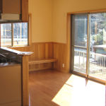 LDKにはお子様と一緒に座れるタモ一枚板のベンチと温水式床暖房でポカポカとします。