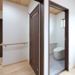 今回の住まいは将来の介護の事を考えた設計、トイレや洗面への入口を2カ所設けて介護の機能性