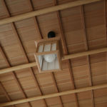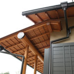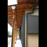 下屋根には、本場京都北山より直送16mの化粧桁を使用し、丸太を納めていく大工らしい仕事でお客様のこだわりにお応えしました。