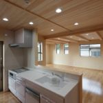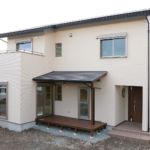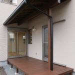 「休日にゆっくりと過ごすことのできるスペースと、日常的に洗濯物なども干しておくことのできる実用性と、快適性を兼ね備えた木の庇が欲しい」とのご要望に洋風住宅にも似合う箱型土庇アジアン風をご提案した棟梁。