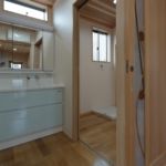数寄屋や大工さんのご意見を参考に、すっきりさっぱりなのに和のよさが伝わる玄関を作ってみました。とてもすっきりとした玄関です。洗面→LDK→土庇へとまわりこめる間取りのため、奥様の家事動線にすぐれ使い勝手もとてもよい家になりました。